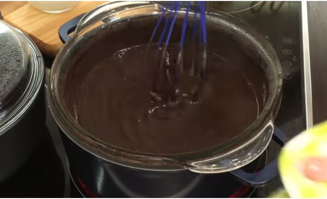 Έτσι 300 γραμμάρια και 1/2 ποτήρι γάλα – αρκετό για αυτή την ποσότητα κακάου.