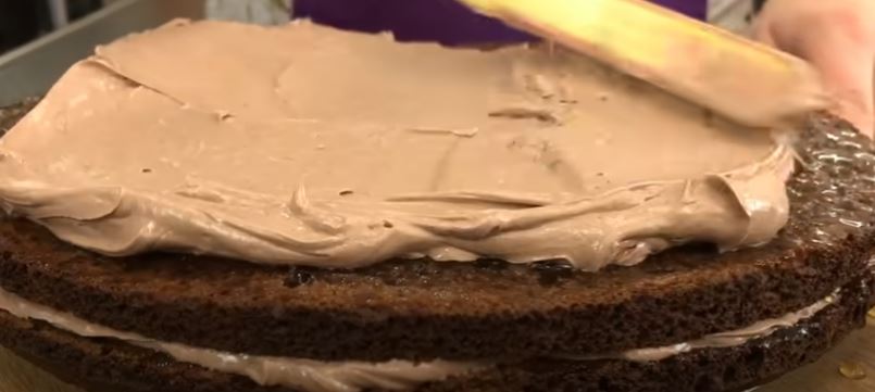 Καλύψτε το κέικ με την κρέμα (όχι κοντα στα άκρα, γιατί όταν πατάτε όλα τα κέικ, θα υπάρχει πάρα πολύ κρέμα).