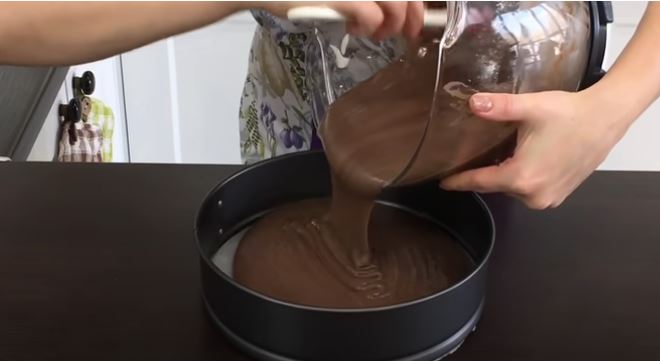 Προθερμάνετε το φούρνο στους 180 C. Ρίχνουμε τη ζύμη και βάζουμε στο φούρνο.
