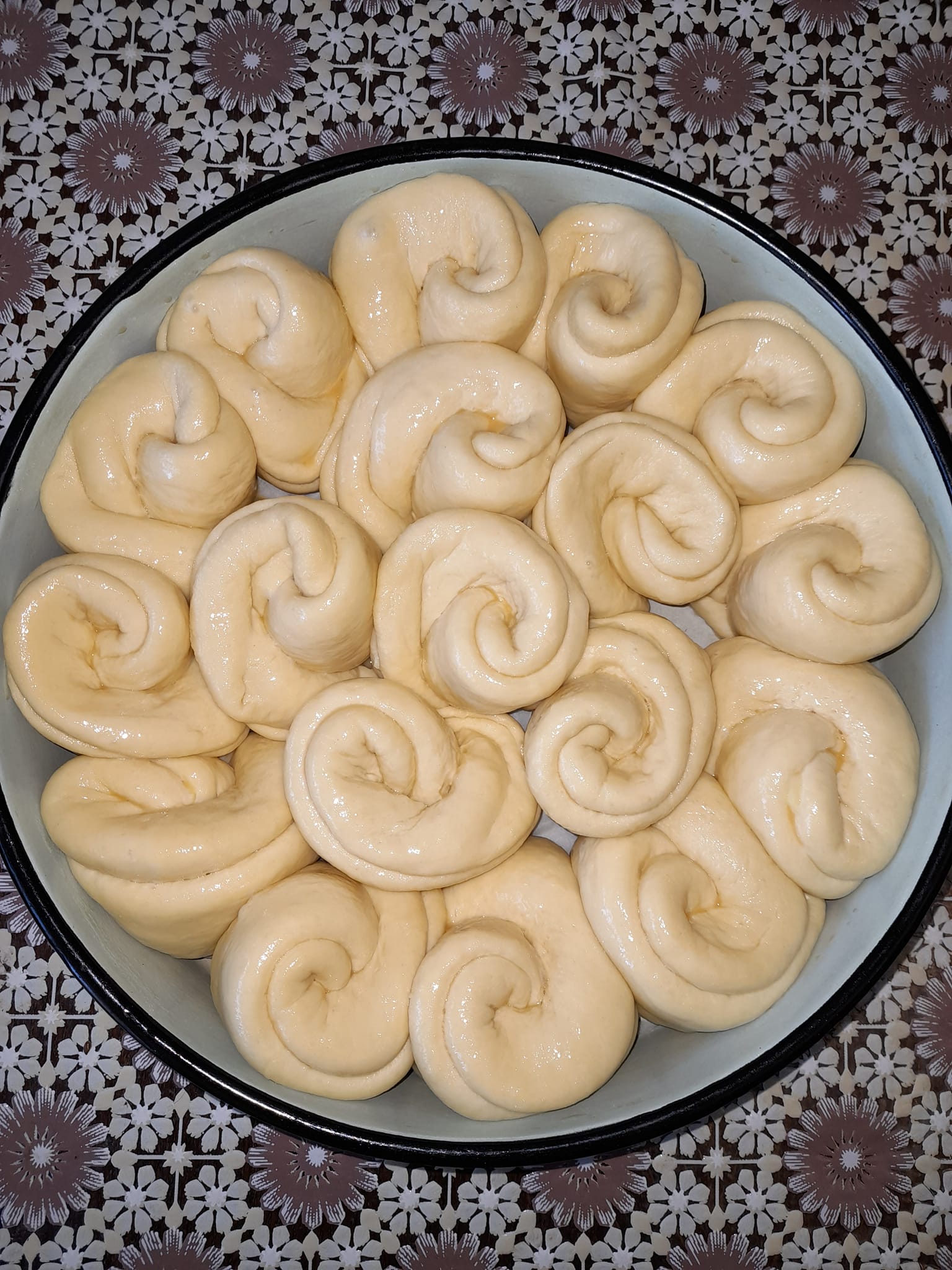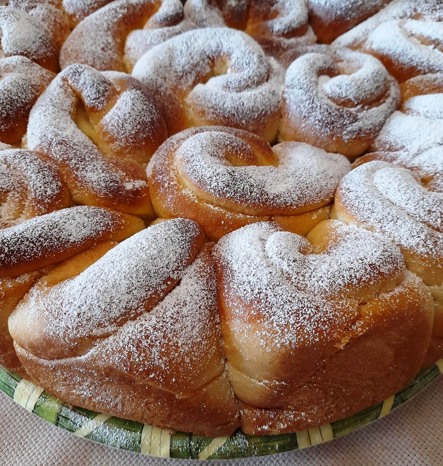 Αφήστε να φουσκώσουν και στη συνέχεια αλείφουμε με αυγό ψήνουμε για περίπου 30-40 λεπτά, στην αρχή των 170 γρ. και μετά στα 180 γρ.