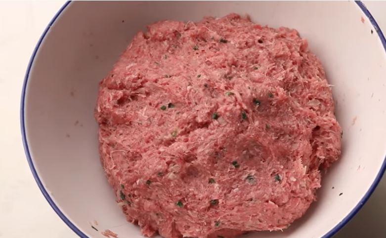 Ζυμώνουμε με το χέρι τους 2 κιμάδες μαζί πολύ καλά