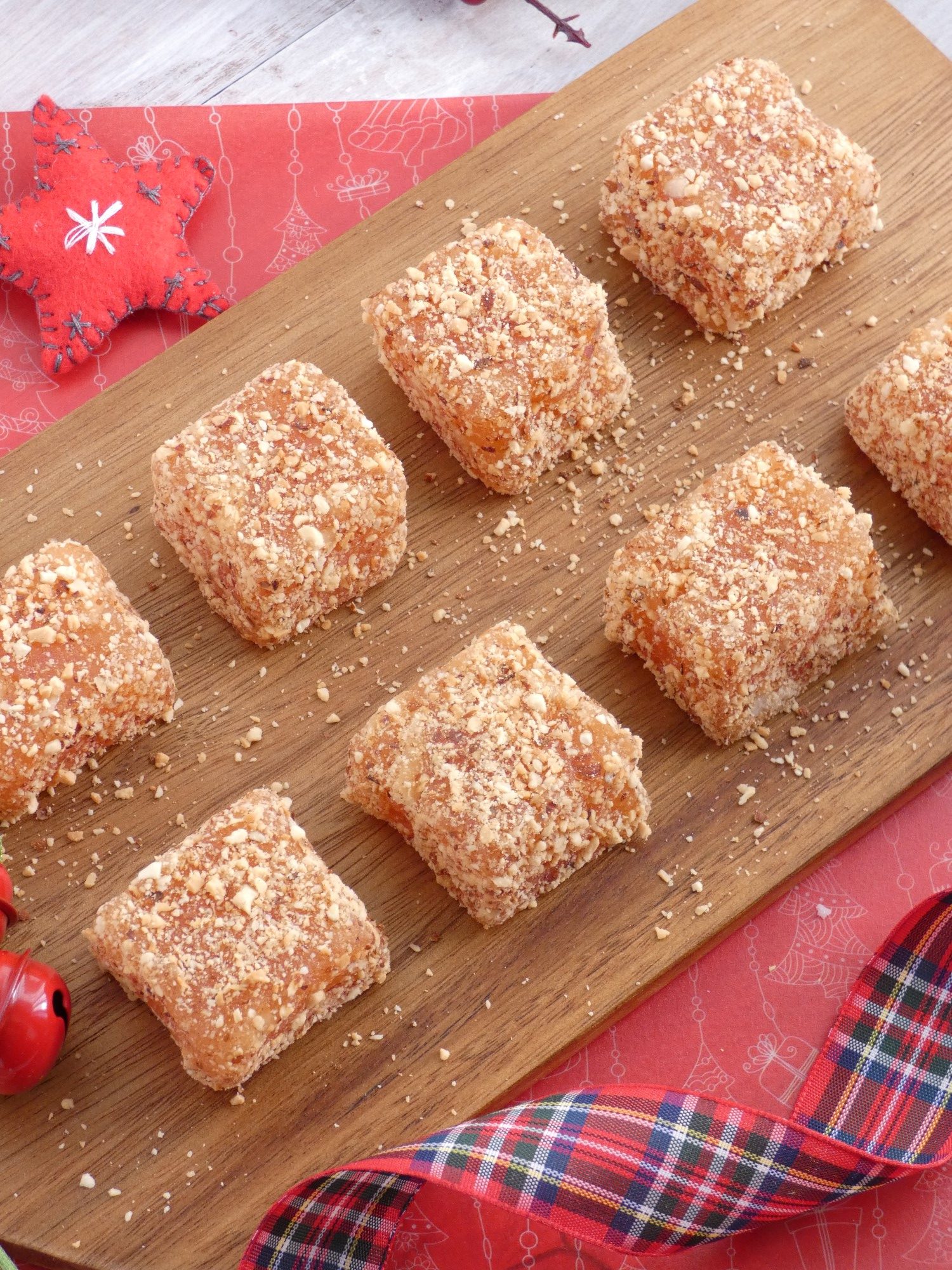 19 Ρίξτε κάθε κύβο σε ψημένα και αλεσμένα αμύγδαλα.