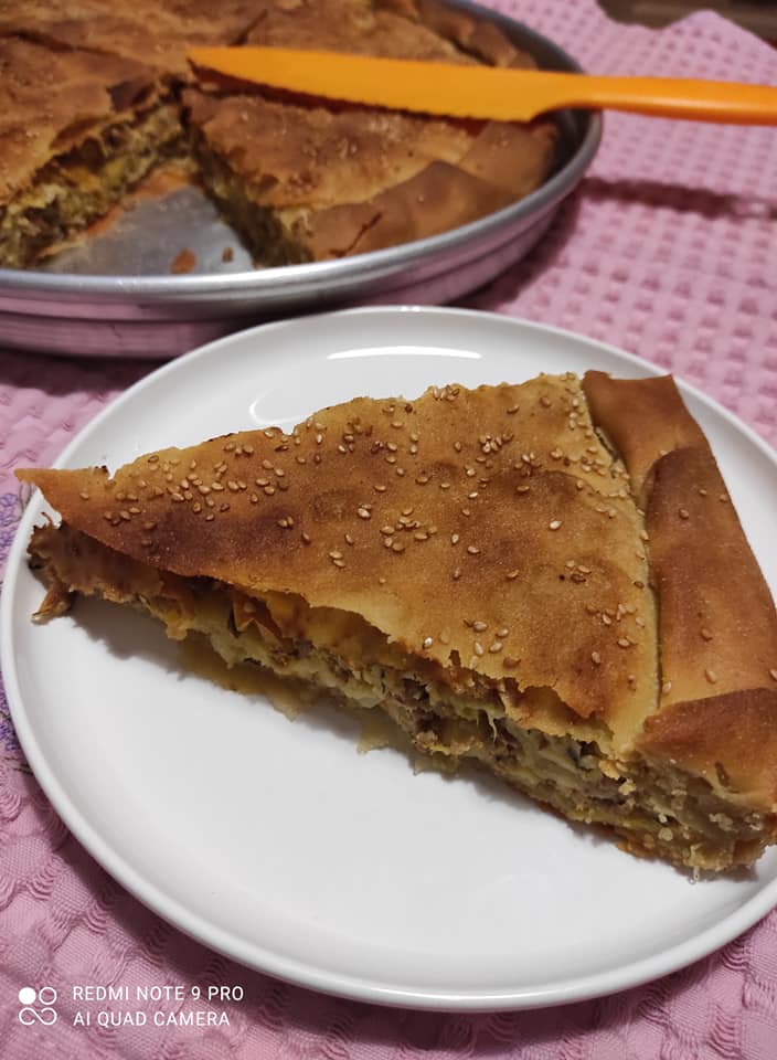 Ψήνουμε Την πίτα σέ προθέρμανση φούρνου στους 200μετα στους 180για περίπου 45λεπτα .