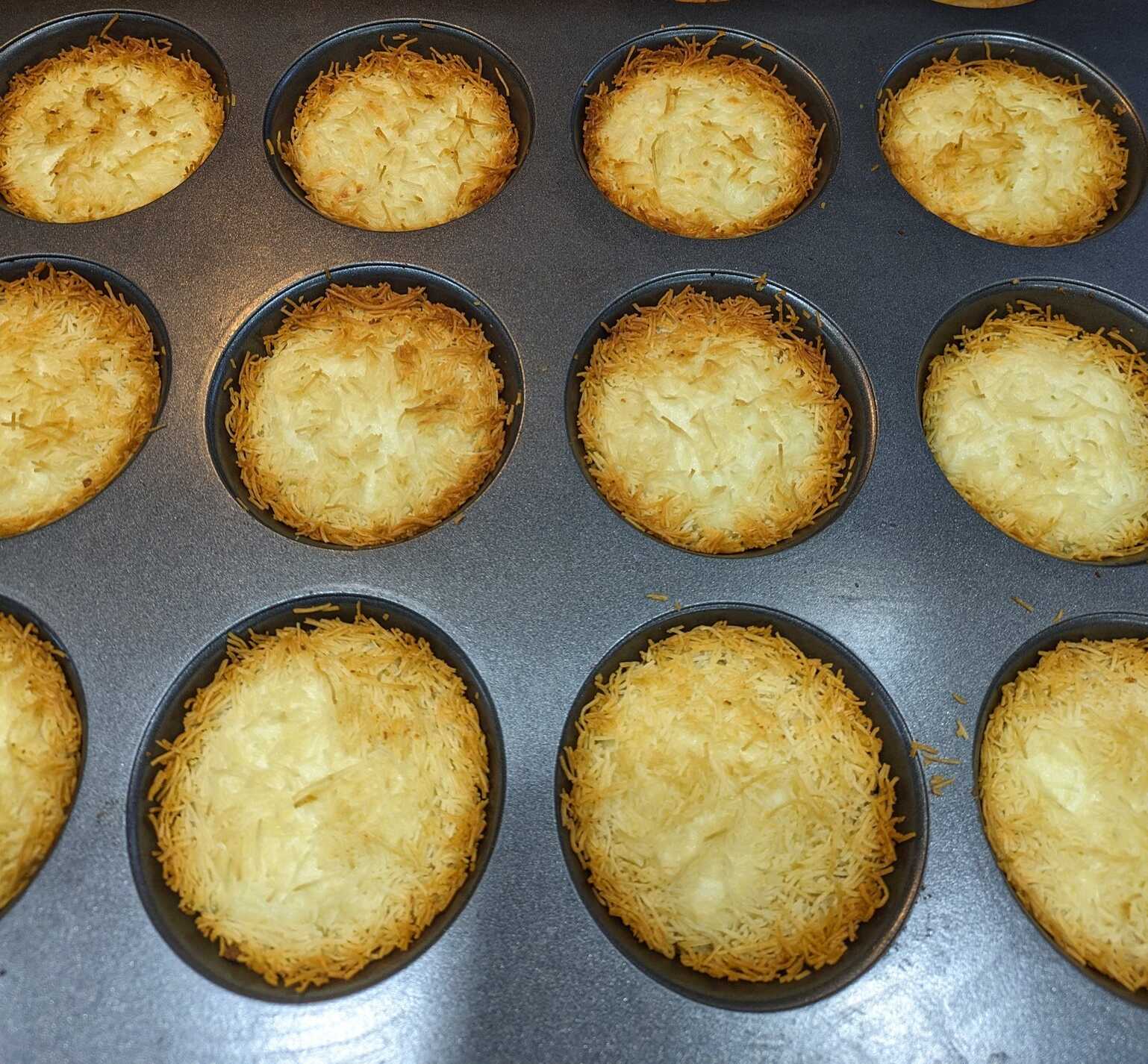 - Για πιο τραγανό αποτέλεσμα, μπορείτε να τσιγαρίσετε το κανταιφι με βουτυρο σε αντικολλητικό τιγάνι πριν τα βάλετε στα muffins.