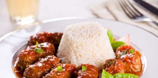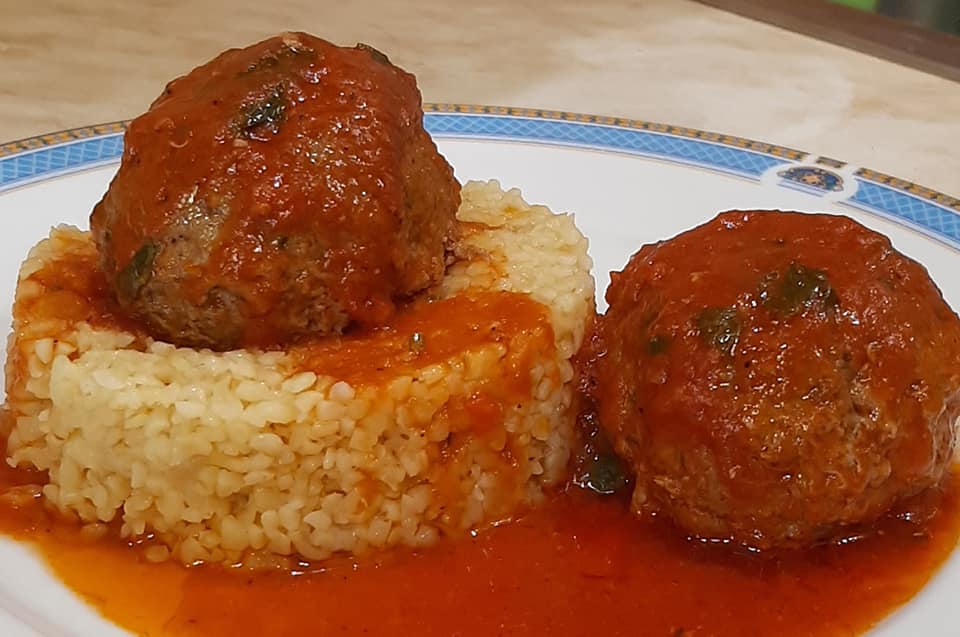 Σερβιρουμε το πλιγουρι με τα κεφτεδακια και σάλτσα ντομάτας