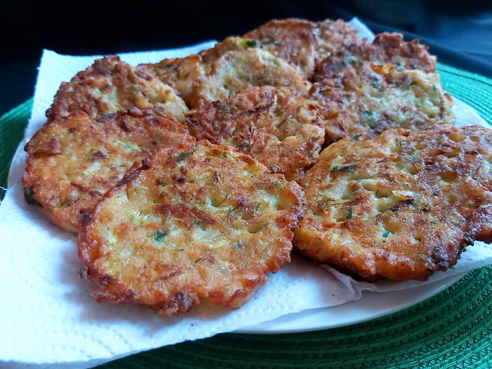 Σήμερα έφτιαξα κολοκυθοκεφτέδες, αλλά αυτή τη φορά πρόσθεσα λίγη τριμμένη μελιτζάνα και πατάτα. Δεν μέτρησα με ακρίβεια τα λαχανικά.