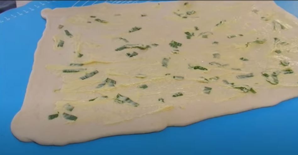 Διπλώστε το 1/3 της ζύμης και βουτυρώστε το από πάνω.