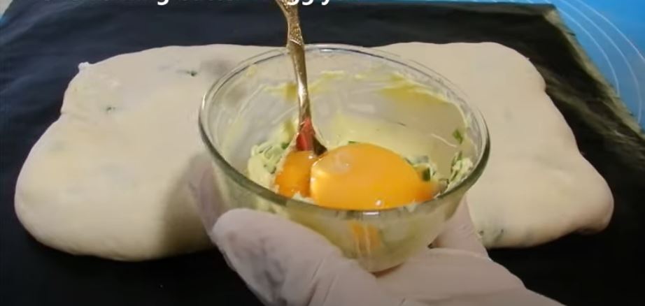 Βούτυρο + κρεμμυδάκι ψιλοκομμένο + αλάτι. Θα κρατήσουμε λίγο μείγμα για το τέλος να το αναμείξουμε με κρόκο αυγού.
