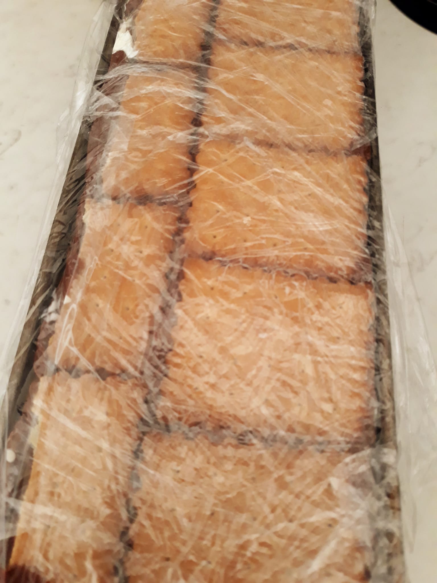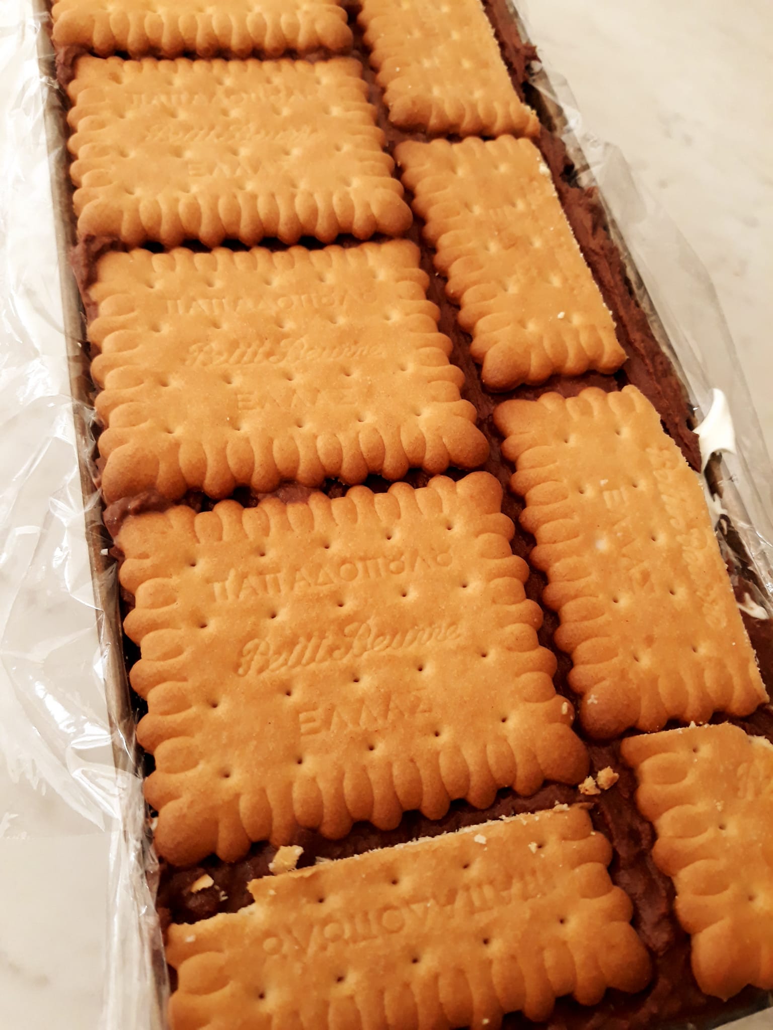 και καλύπτουμε τελευταία στρώση με τα μπισκότα με μεμβράνη