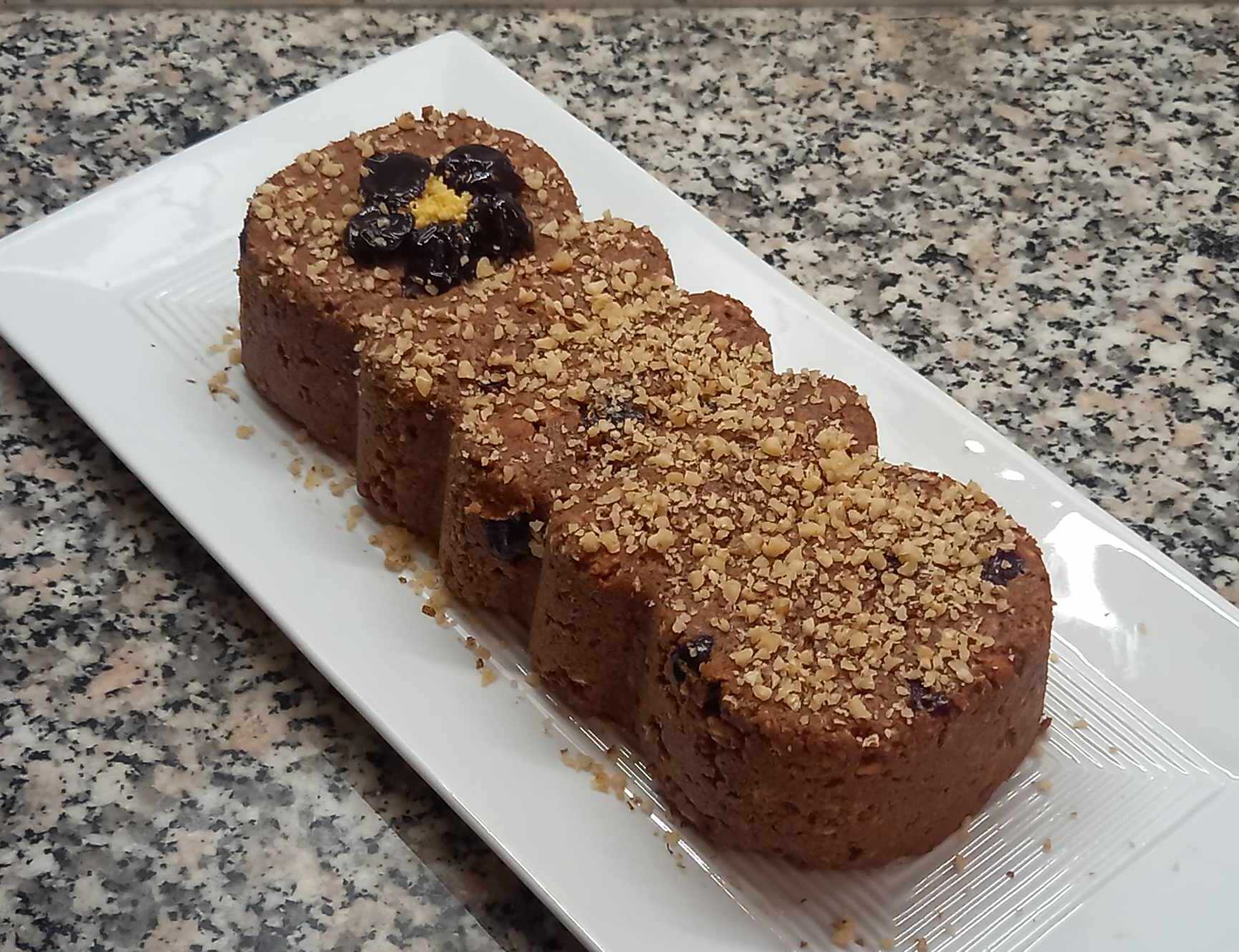 Προσθέτουμε το γλυκό βύσσινο, τα καρύδια και το μείγμα της σοκολάτας.
