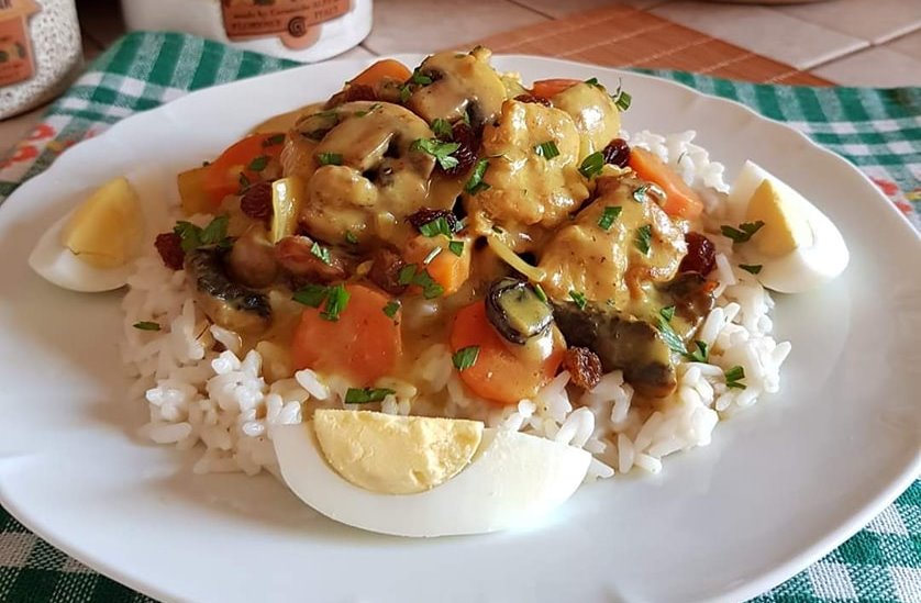 Kοτόπουλο με σάλτσα μανιταριών και κάρυ