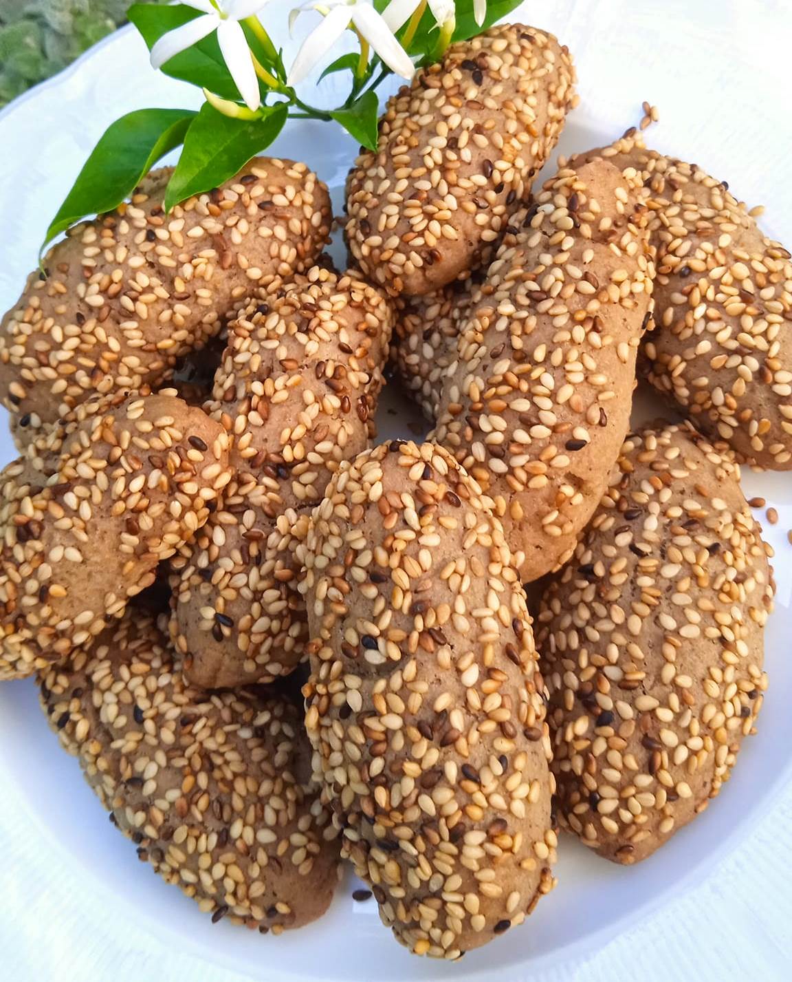 Πλάθουμε τα κουλουράκια στο σχήμα που θέλουμε (π.χ. στρογγυλά , πλεξούδες ή μακρόστενα ) και τα κυλάμε στο καλά καβουρδισμένο σουσάμι .