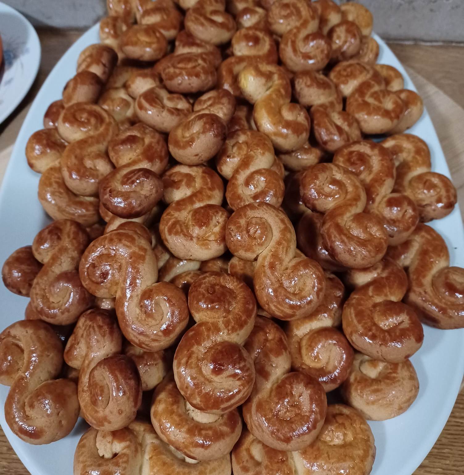 Αφού κρυώσουν τελείως τα κουλουράκια μας και πάρει και το σιρόπι θερμοκρασία δωματίου, τα σιροπιαζουνε γρήγορα, τα τοποθετούμε σε πιατέλα και