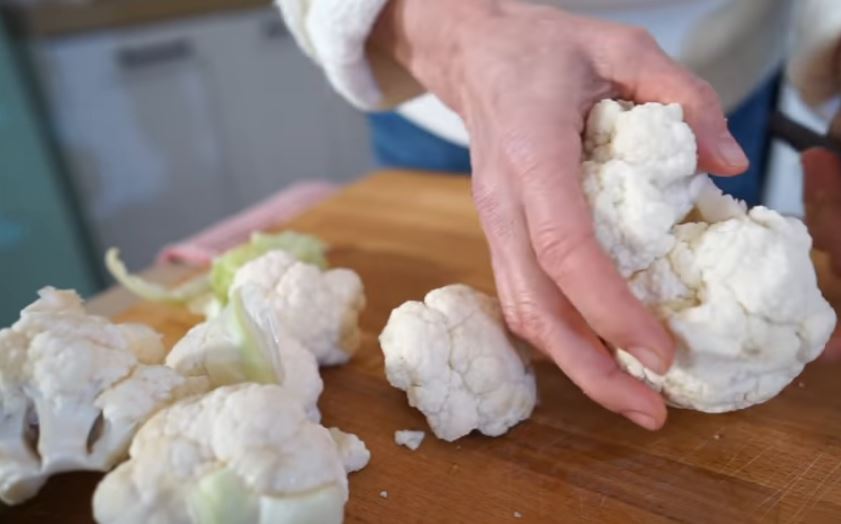 Πρώτα καθαρίζουμε το κουνουπίδι και στη συνέχεια και αφαιρούμε τα εξωτερικά φύλλα και το σκληρό μέρος στην βάση του κουνουπιδιού.