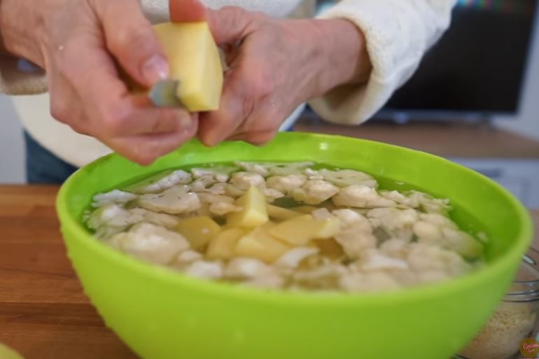 Εφόσον τελειώσουμε με το κουνουπίδι κόβουμε και τις πατάτες και τις ρίχνουμε και αυτές στο νερό.