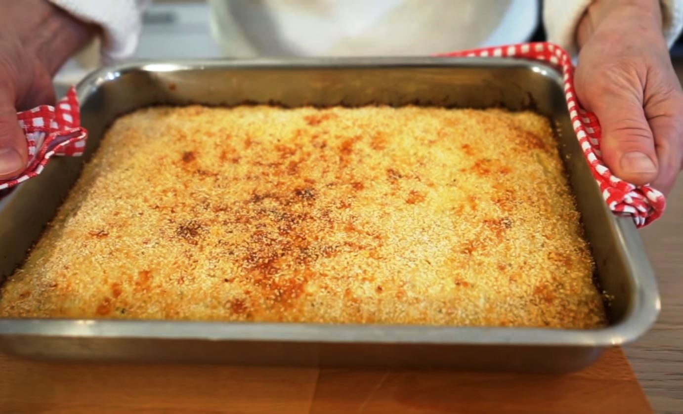Κάνω ένα δεύτερο στρώμα με τις φέτες καπνιστού και απο πάνω δεύτερο στρώμα του μειγματος, και απο πάνω πασπαλίζω τριμμένη παρμεζάνα και μετα και τριμμένη φρυγανιά.