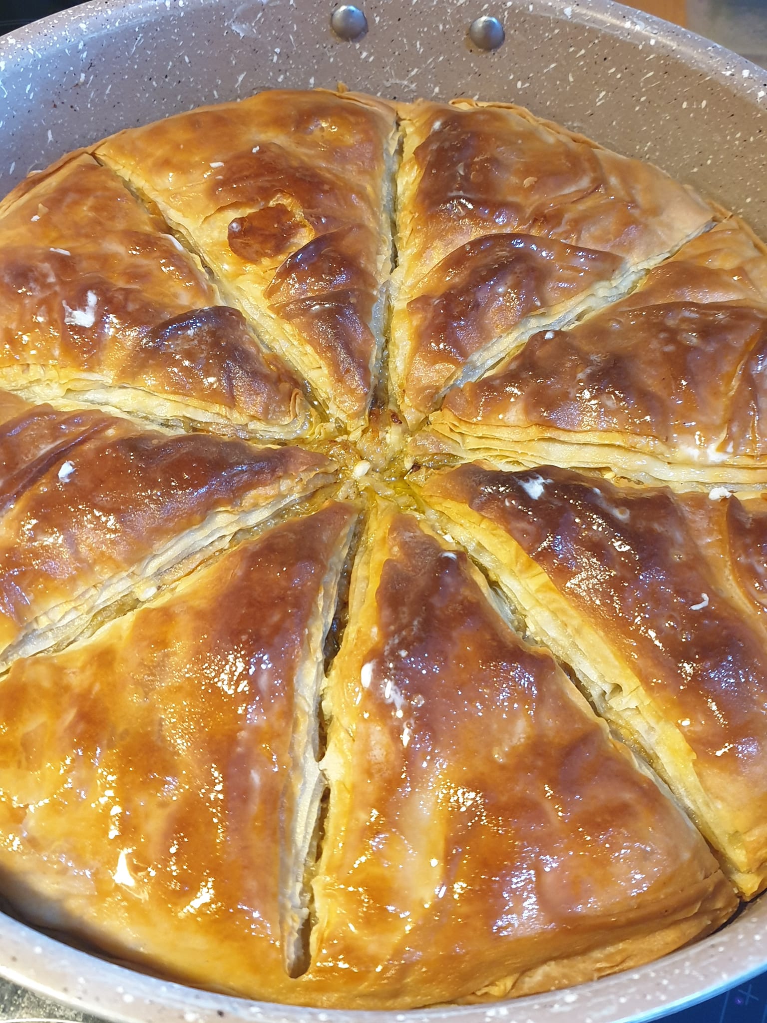 Στο ταψί θα βάλω 18 φύλλα. Πρώτη στρώση λίγο λάδι βάζουμε γέμιση πάλι φύλλα λίγο λάδι μετά γέμιση και στο τέλος φύλλα λάδι