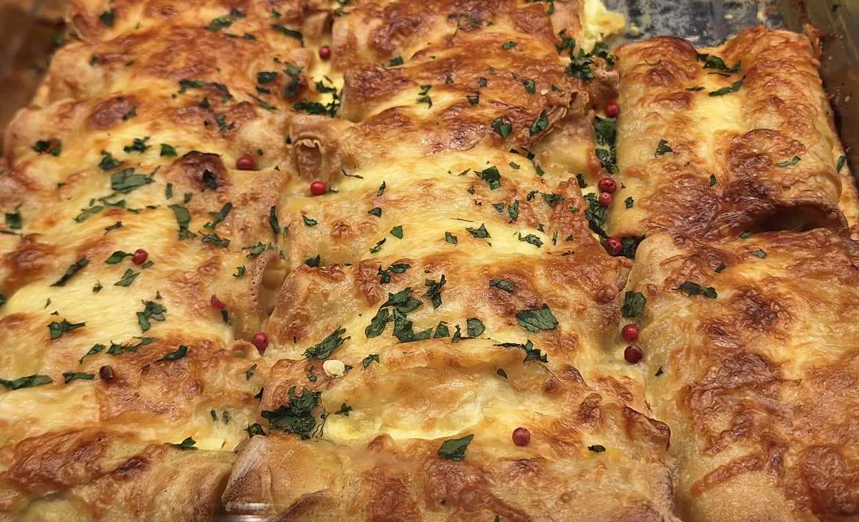 Οι κρέπες με ζαμπόν και τυρί στο φούρνο αποτελούν μια από τις πιο αγαπημένες και παρηγορητικές λύσεις για ένα γρήγορο αλμυρό γεύμα που δεν στερείται νοστιμιάς και ποιότητας Είναι η ιδανική συνταγή για εκείνες τις ημέρες που αναζητάτε κάτι χορταστικό και πληθωρικό αλλά ταυτόχρονα εύκολο στην παρασκευή του Το μυστικό αυτής της εκδοχής κρύβεται στο ψήσιμο μέσα στο πυρέξ όπου το γάλα εβαπορέ και τα τριμμένα τυριά δημιουργούν μια κρεμώδη υφή που αγκαλιάζει τα ρολά της κρέπας κάνοντάς τα ακαταμάχητα .