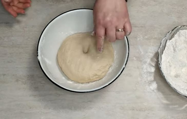 Βγάζουμε τη ζύμη σε ένα αλευρωμένο πάγκο και συνεχίζουμε να ζυμώνουμε ώστε να γίνει πολύ μαλακή ζυμη. Βάζουμε τη ζύμη μέσα σε ένα μπολάκι που έχουμε αλευρώσει και τις σκεπάζουμε για μισή ώρα.