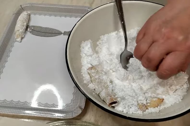 Βγάζουμε σ ενα δίσκο και πασπαλίζουμε με αχνη