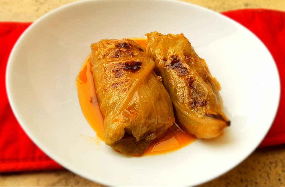 Λαχανοντολμάδες με κιμά κοκκινιστοί