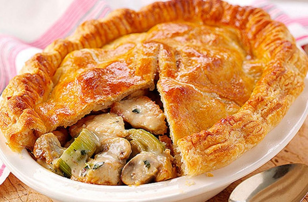 Λαχταριστή πίτα με κοτόπουλο, πράσα και μανιτάρια