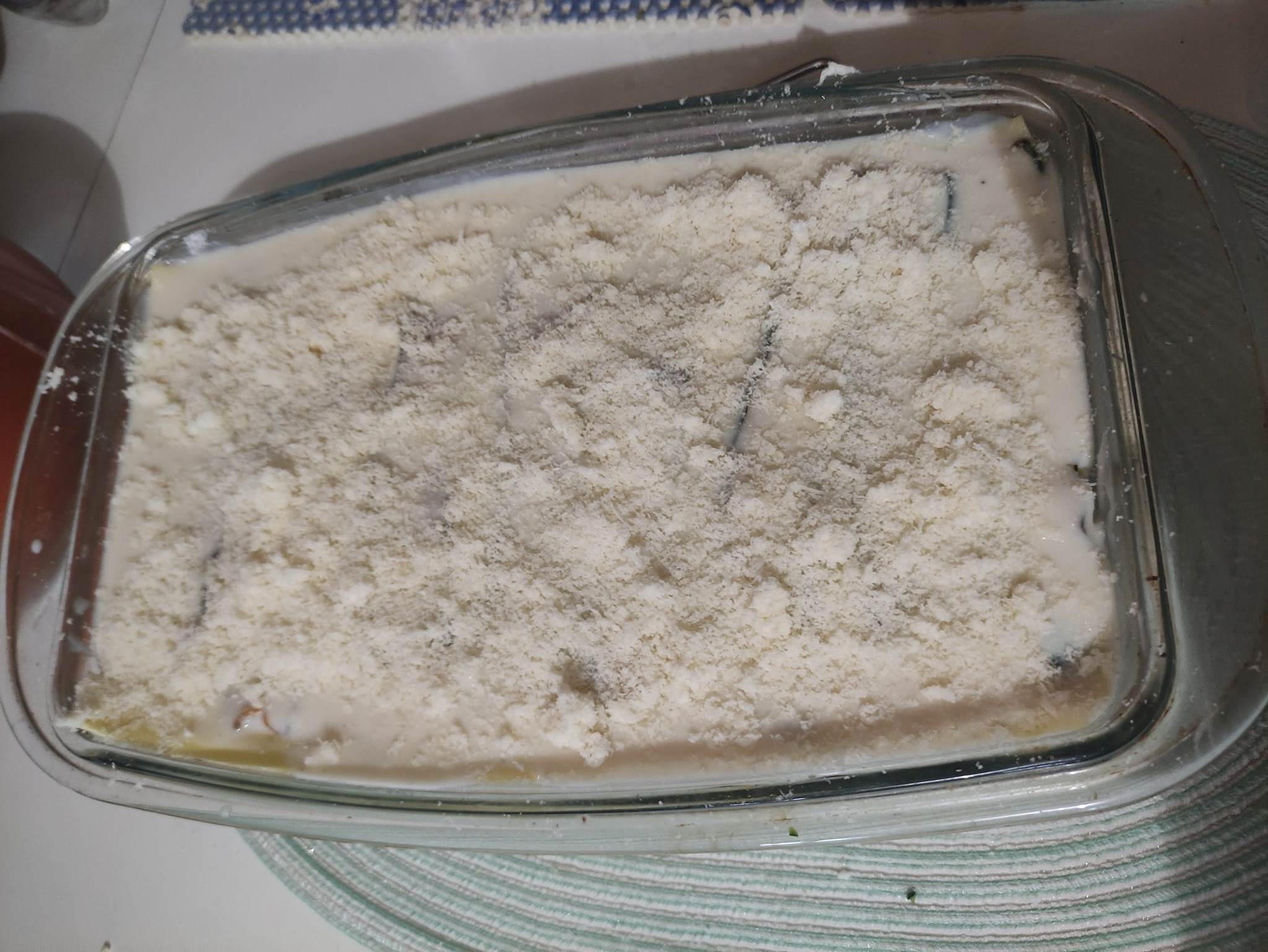 Την σβήνω την ανακατεύω και την αφήνω να κρυώσει μετά βουτυρώνω το ταψί βάζω τη στρώση λαζάνια χωρίς να τα βάλω σε βραστό νερό γιατί είναι φρέσκα και ψήνονται γρήγορα, τα τριμμενα κολοκυθάκια τριμμένη μοτσαρέλα και παρμεζάνα άλλη στρώση λαζάνια και ούτω καθεξής, τέλος σκεπάζω με τα τηγανητά κολοκυθάκια σε φετες, τη μπεσαμέλ, την παρμεζάνα