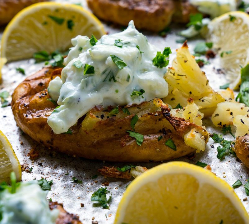 Λεμονάτες Σπασμένες πατατες με τζατζίκι