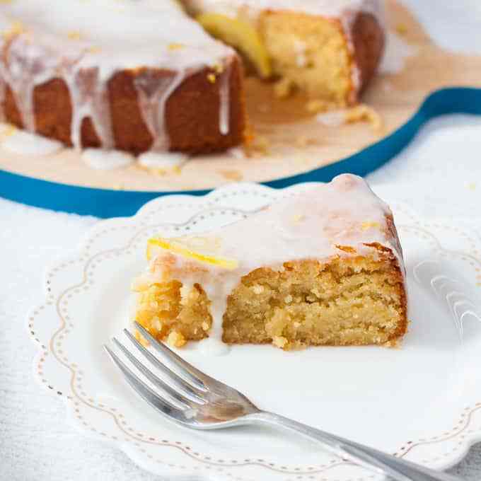 Ανακατέψτε το χυμό λεμονιού και τη ζάχαρη άχνη, στη συνέχεια ρίξτε πάνω από το κέικ. Πασπαλίστε με ξύσμα λεμονιού.
