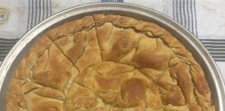 Ψήνουμε την πίτα 190 βαθμούς για μία ώρα