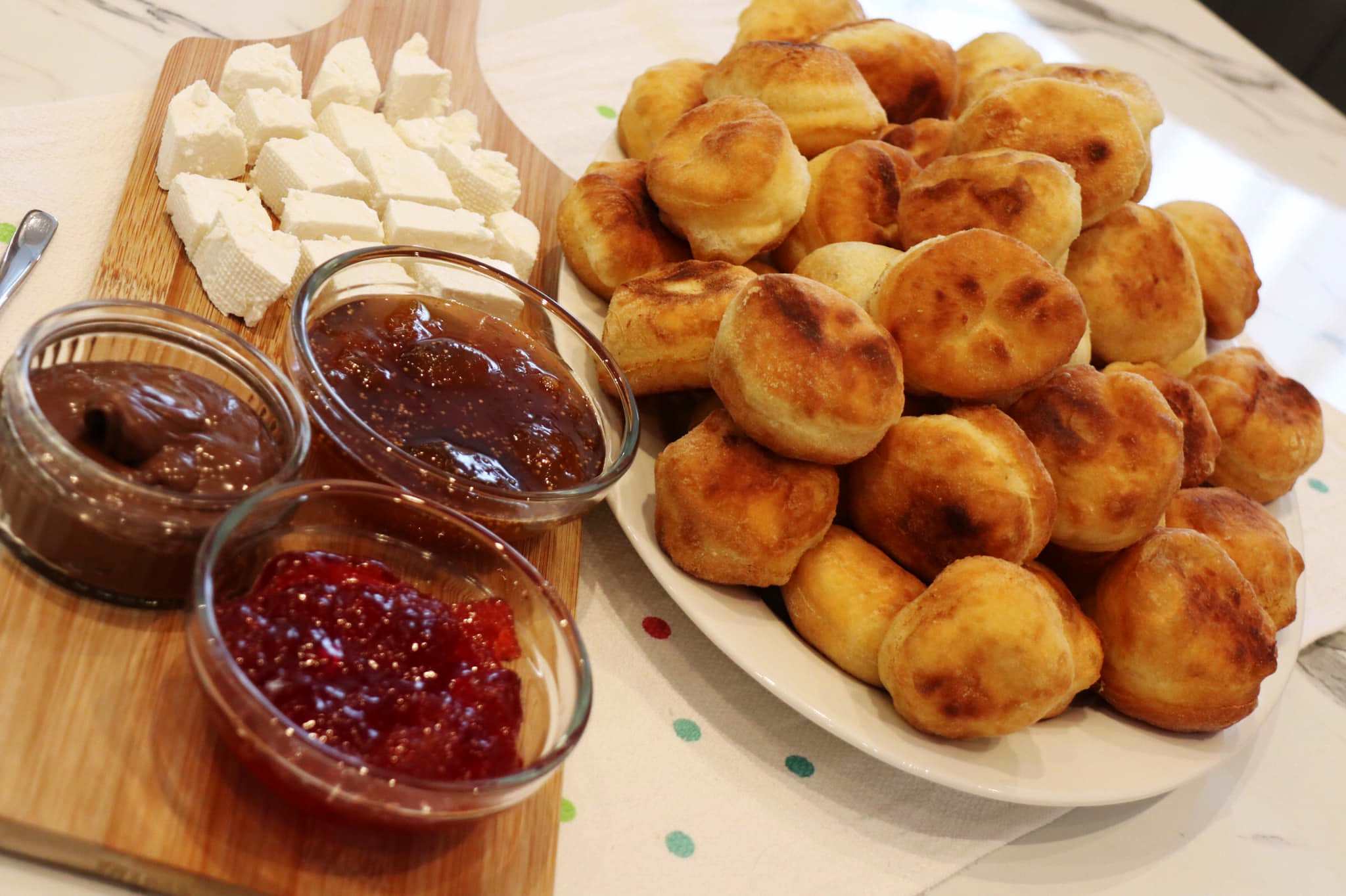 Μόλις κρυώσουνε λίγο μπορείτε να τα φάτε με μαρμελάδες, μερέντε ή ακόμη και τυρί φέτα