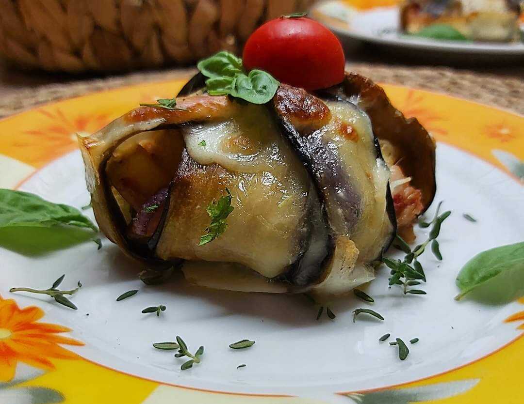 Mελιτζάνα γεμιστή με κοτόπουλο και πατάτες