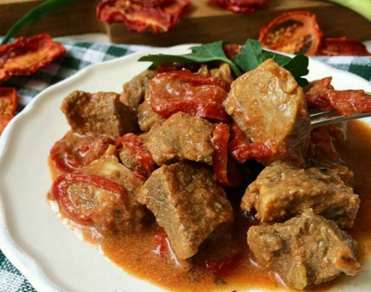 Mοσχαρίσιο στιφάδο με λιαστές ντομάτες