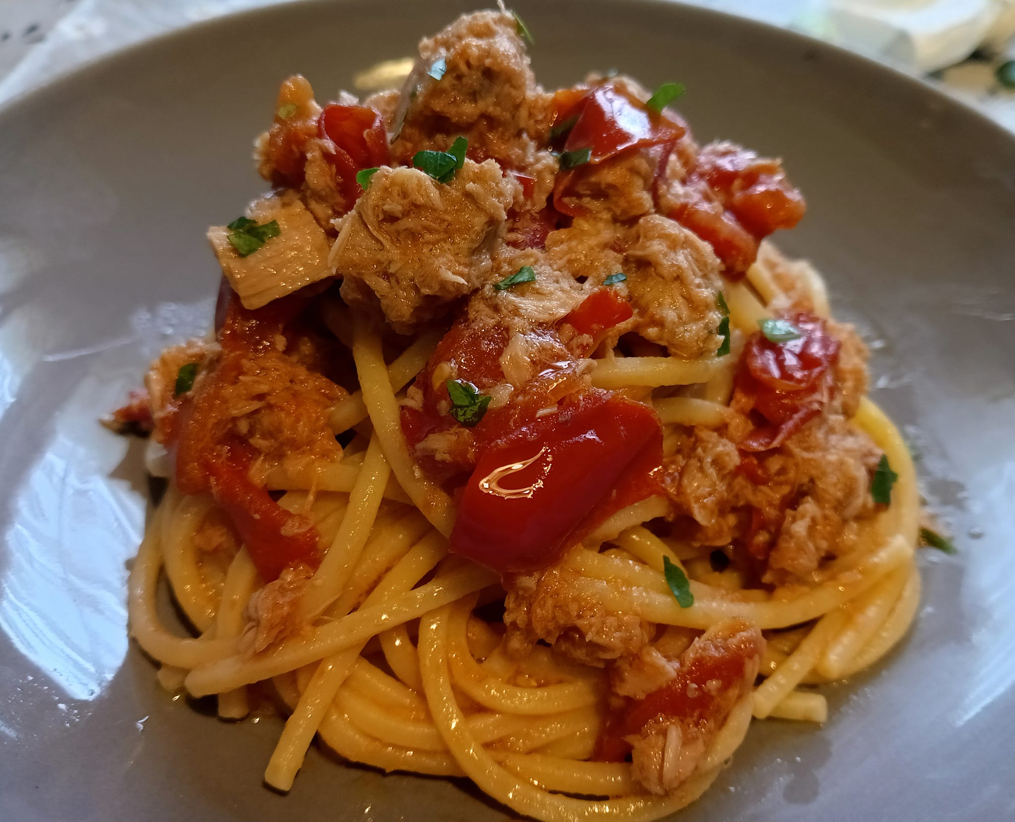 Σερβίρετε τα σπαγγέτι με τόνο ζεστό και, αν θέλετε, προσθέστε μια τελευταία πινελιά με τριμμένο μαύρο πιπέρι ή πασπαλίζοντας τσίλι για ακόμα πιο δυνατή γεύση.