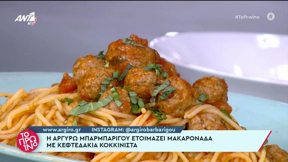Η Αργυρώ Μπαρμπαρίγου είναι μια από τις πιο δημοφιλείς Ελληνίδες σεφ, γνωστή για τις απλές και νόστιμες συνταγές της. Στην εκπομπή της “Μαγειρεύουμε με την Αργυρώ” έφτιαξε μια κλασική ελληνική συνταγή, μακαρονάδα με κεφτεδάκια κοκκινιστά.