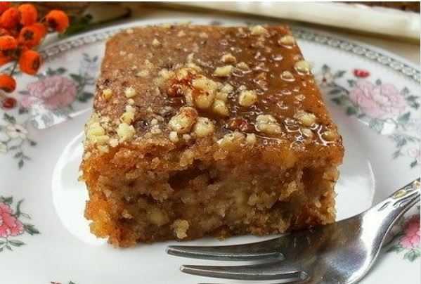 Προσθήκη: με την επικάλυψη σοκολάτας είναι ακόμα πιο νόστιμο! σε αυτή την περίπτωση η ζύμη δεν πασπαλίζεται με ψιλοκομμένα καρύδια πριν το ψήσιμο. Φτιάξτε το γλάσο από 100 γραμμάρια μαύρης σοκολάτας, 50 γραμμάρια βούτυρο, 1 κουταλιά της σούπας κρέμα γάλακτος, 1 κουταλιά της σούπας λάδι – όλα συνδυάζονται καλά σε χαμηλή φωτιά και περιχύνετε το κέικ. Ο συνδυασμός κανέλας, σοκολάτας, καρυδιών είναι μια πραγματική απόλαυση!