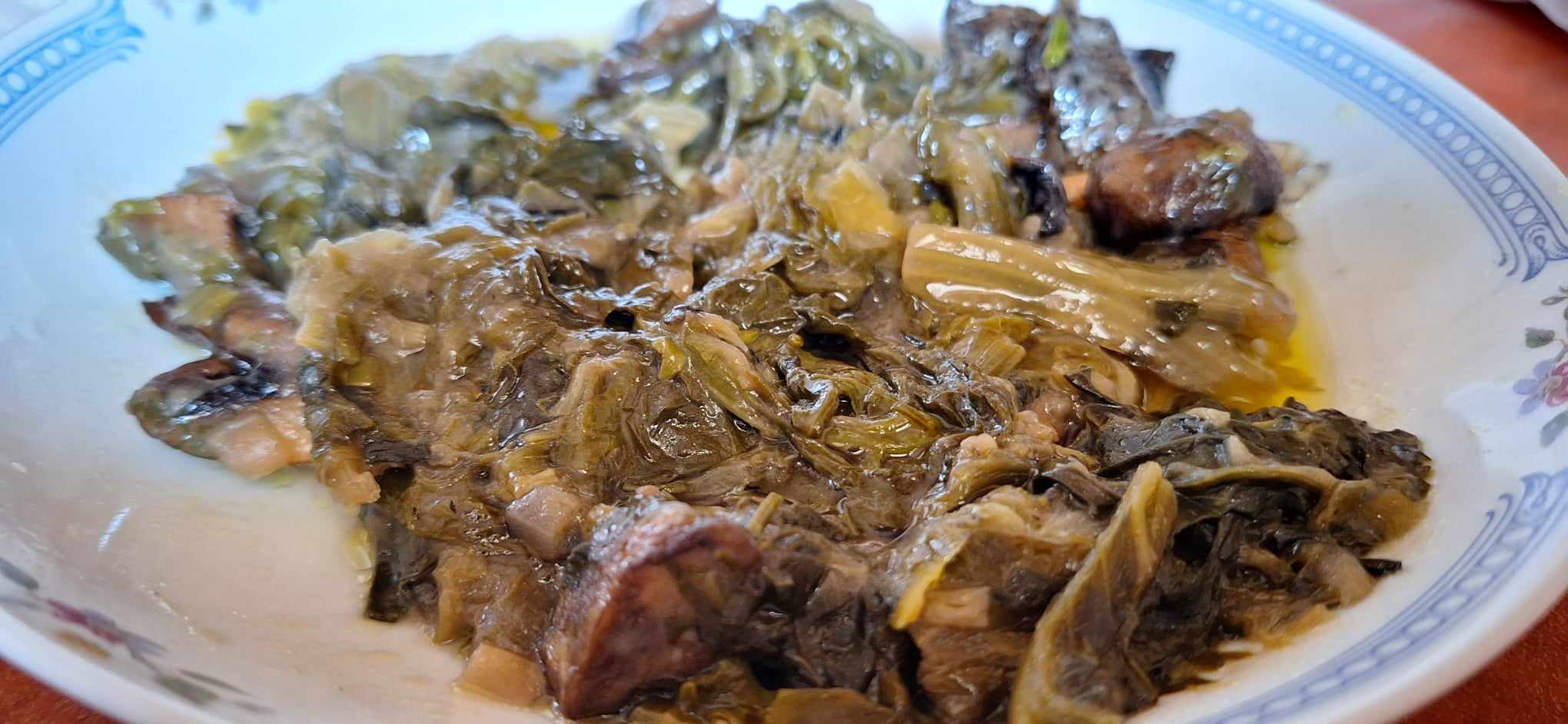 Προσθέτουμε όλα τα χόρτα μας και κλείνουμε το καπάκι να βγάλουν κι αυτά τα υγρά τους οπότε βλέπουμε ότι έχουν συρρικνωθεί πολύ.
