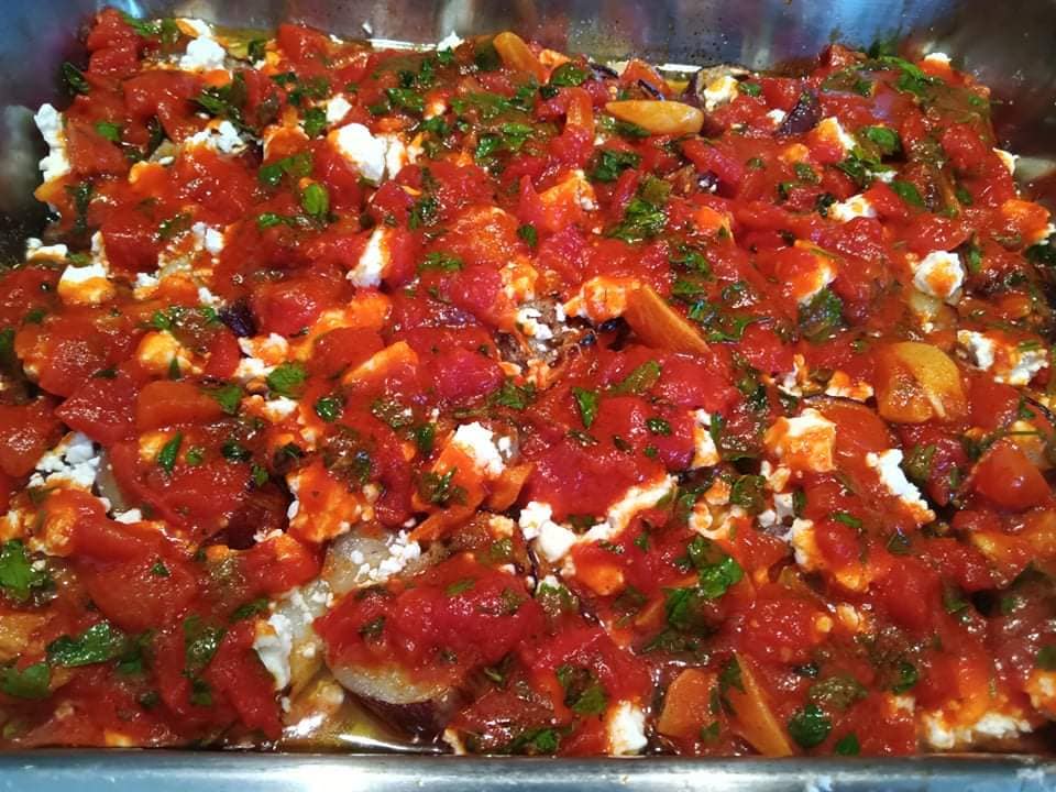 Μελιτζάνες και πατάτες με φέτα και σάλτσα ντομάτας🍅