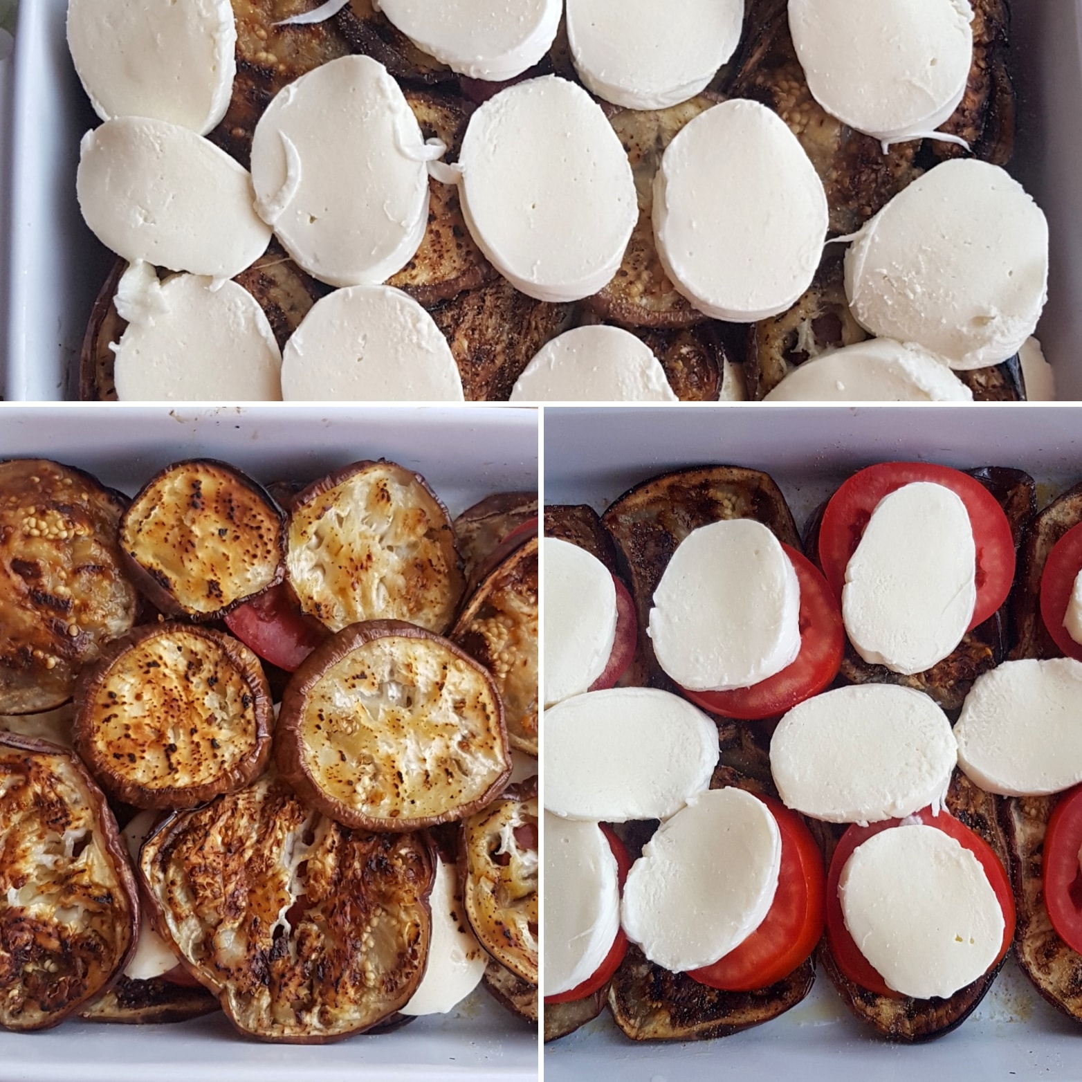 Ακολουθεί μια δεύτερη σειρά μελιτζάνας και από πάνω μόνο φέτες μοτσαρέλα. Επιστρέφουμε στο φούρνο για 5-10 λεπτά και τέλος ενεργοποιούμε μόνο το πάνω μέρος για να ψηθεί από πάνω.