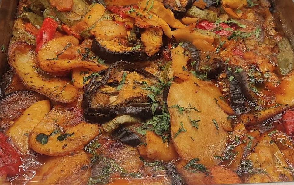 Βάζουμε λίγο λάδι στο τηγάνι και τηγανίζουμε κανονικά τις πατάτες πρώτα και μετά τις μελιτζάνες και τις πιπεριές.