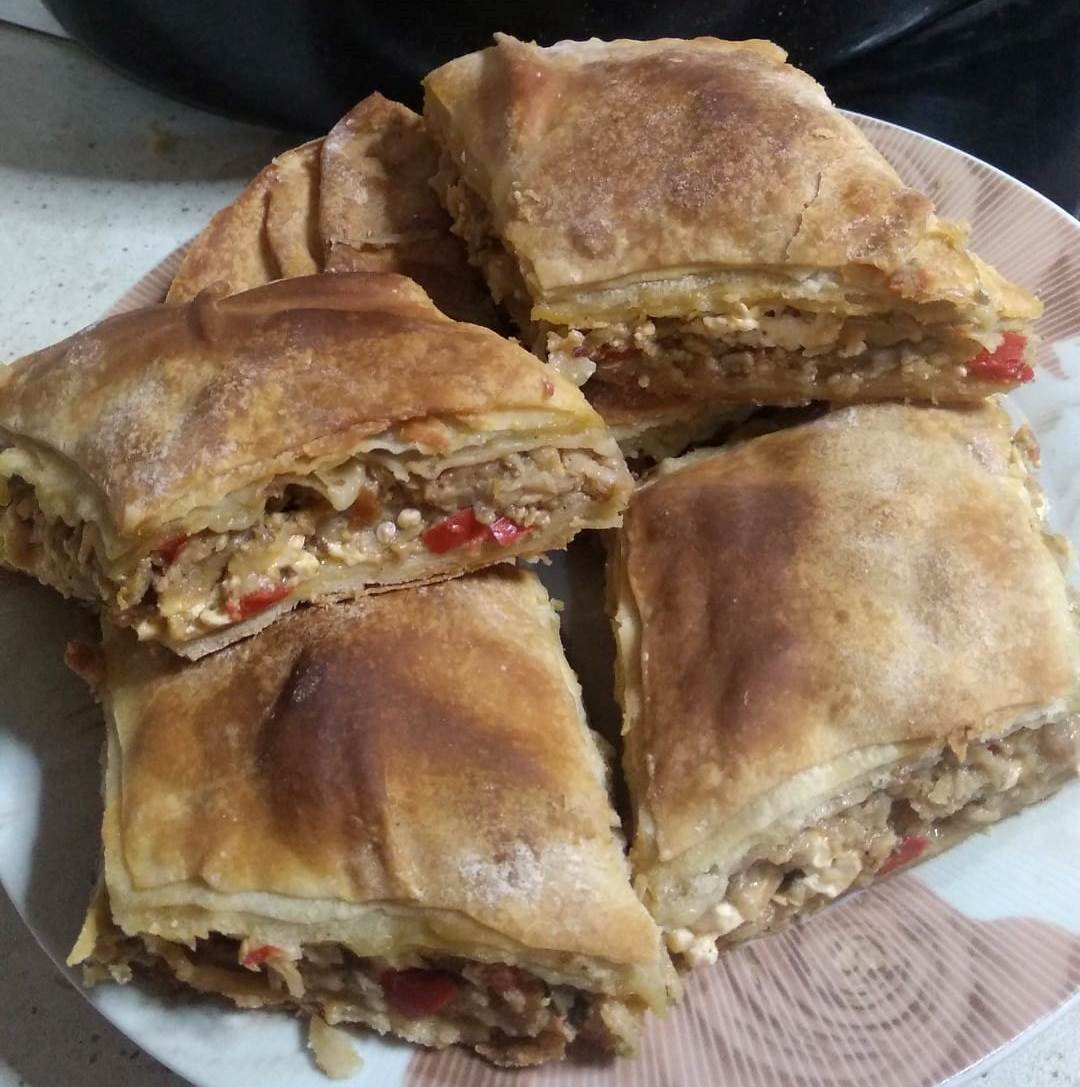 Μελιτζανόπιτα με φέτα και νόστιμες πιπεριές