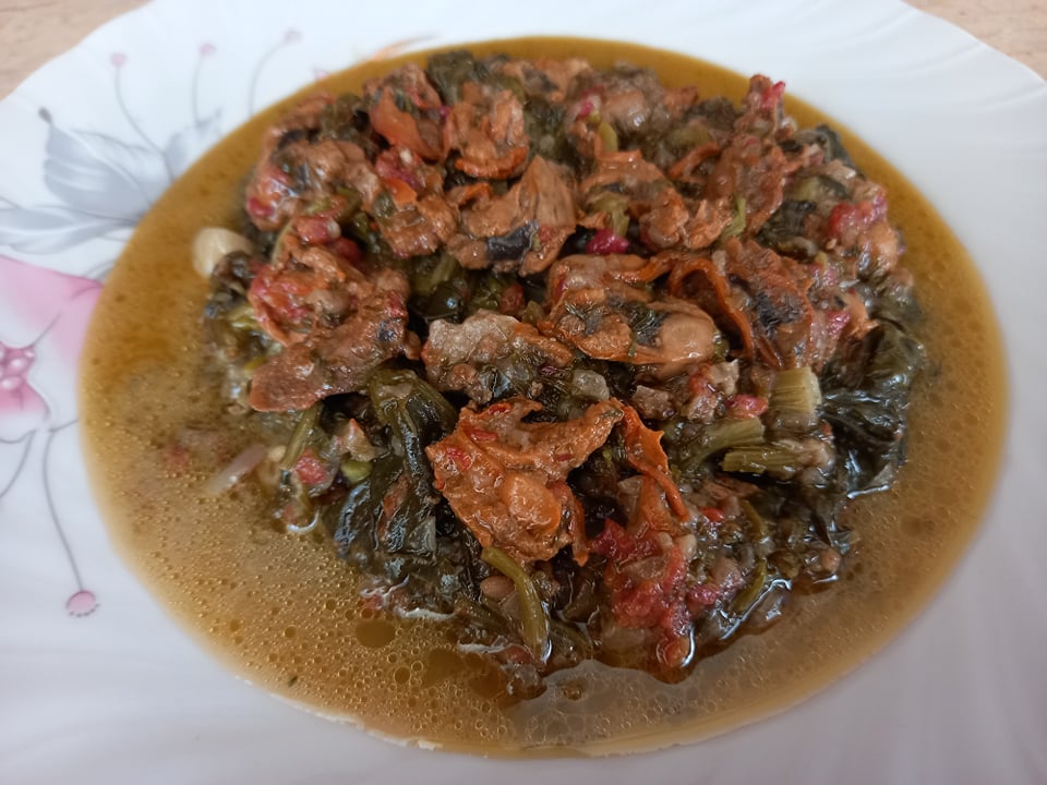 Καθαρίζουμε το σπανάκι το πλένουμε και το χοντροκόβουμε με τα χέρια μας.