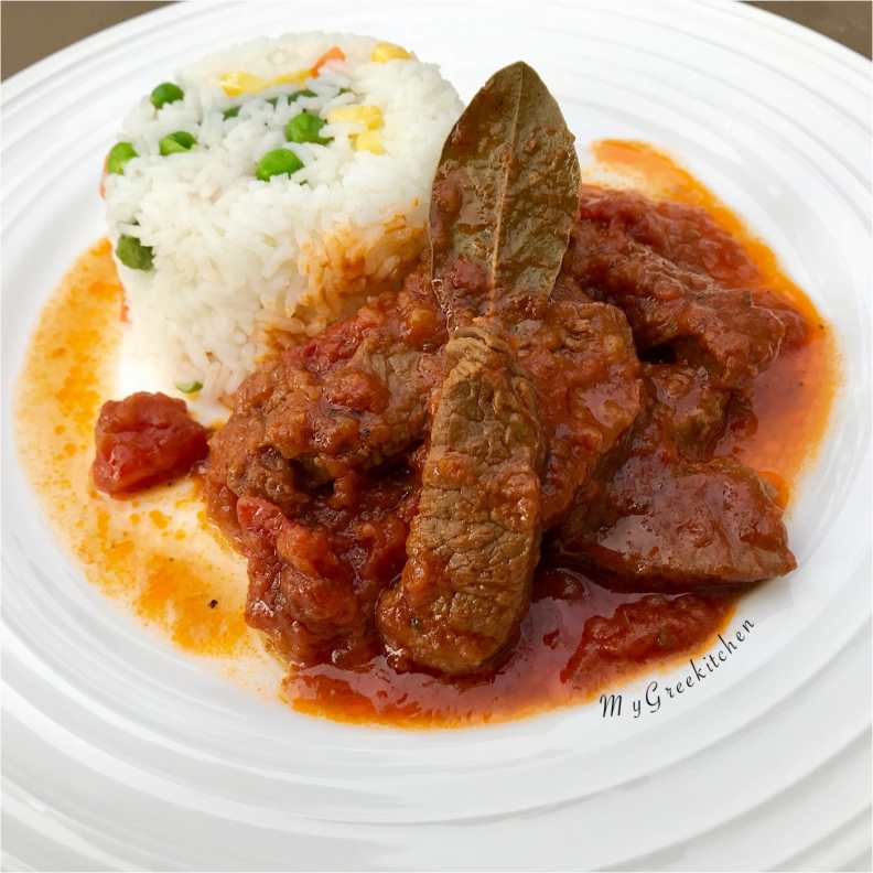 Χαμηλώστε τη φωτιά και σιγοβράζετε για 1 ½ ώρες, έως ότου το κρέας είναι τρυφερό. Προσθέστε λίγο περισσότερο νερό εάν η σάλτσα αρχίσει να στεγνώνει. Σερβίρετε με ρύζι.