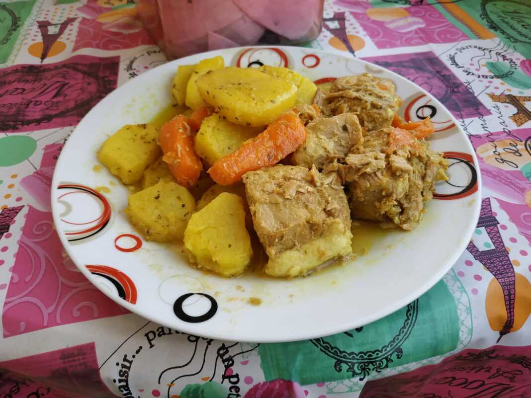 Σημείωση *Με τον ίδιο τρόπο μπορείτε να μαγειρέψετε κατσικάκι ή αρνάκι. *Μπορείτε να μαγειρέψετε το φαγητό χωρίς πατάτες και καρότα. Σε αυτή την περίπτωση θα αφήσετε το κρέας να μαγειρευτεί πολύ καλά, προσθέτοντας επιπλέον νερό -αν είναι απαραίτητο- και 15 λεπτά πριν σβήσετε τη φωτιά θα προσθέσετε το χυμό του λεμονιού και το υπόλοιπο ελαιόλαδο, θα κουνήσετε καλά την κατσαρόλα να πάει παντού και θα περιμένετε να μείνει το φαγητό με μια ωραία δεμένη σάλτσα. Θα το συνοδεύσετε με πιλάφι, πατάτες τηγανιτές ή άλλη γαρνιτούρα της επιλογής σας. Το σπαγγέτι είναι μια ακόμη καλή γαρνιτούρα. *Μπορείτε μέσα στο νερό να διαλύσετε 1 κουτ. σούπας μουστάρδα ή 1 κουτ. γλυκού κουρκουμά.