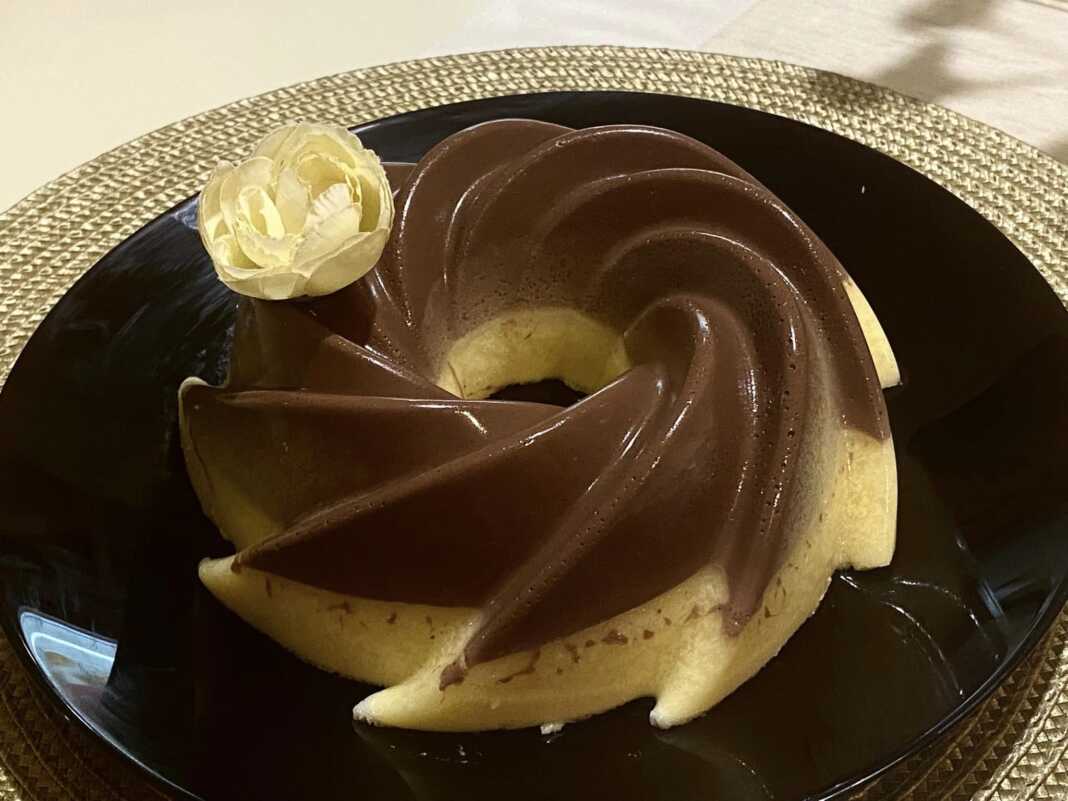 Αφήνουμε το μείγμα να κρυώσει ελαφρώς και ύστερα το χύνουμε σε μια φόρμα κέικ.