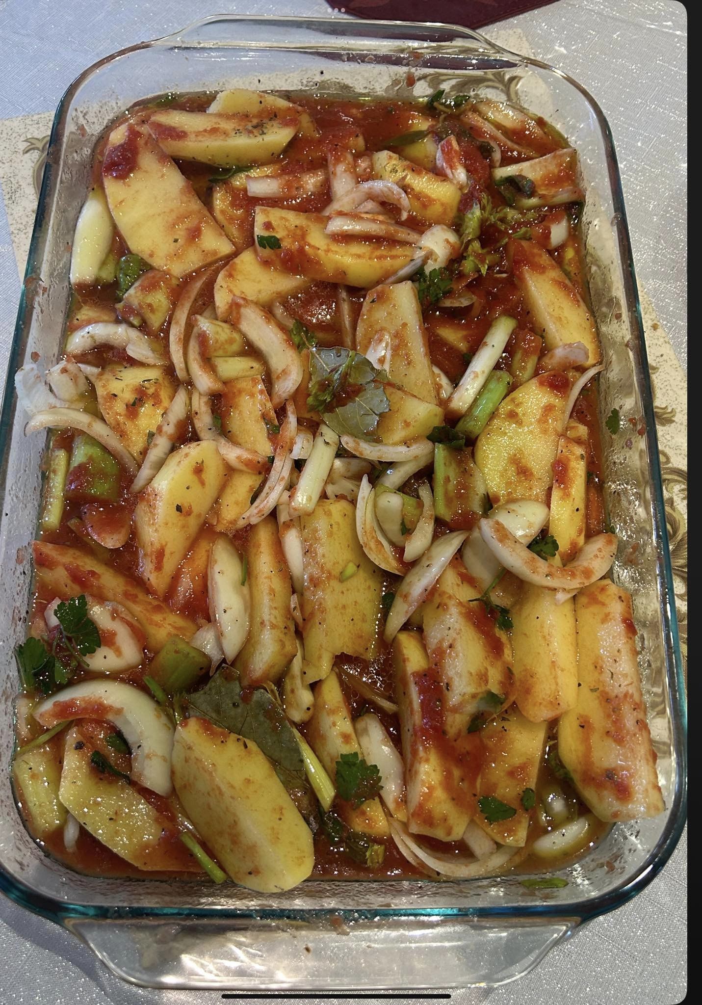 προσθέτουμε τα φύλλα δάφνης και κομμένο μαϊντανό και συνεχίζουμε το ψήσιμο για άλλα 45 λεπτά αναλόγως το φούρνο. Και σερβίρουμε με ψιλοκομμένο μαϊντανό και ωμό ελαιόλαδο. Εύχομαι σε όλους να είστε καλά