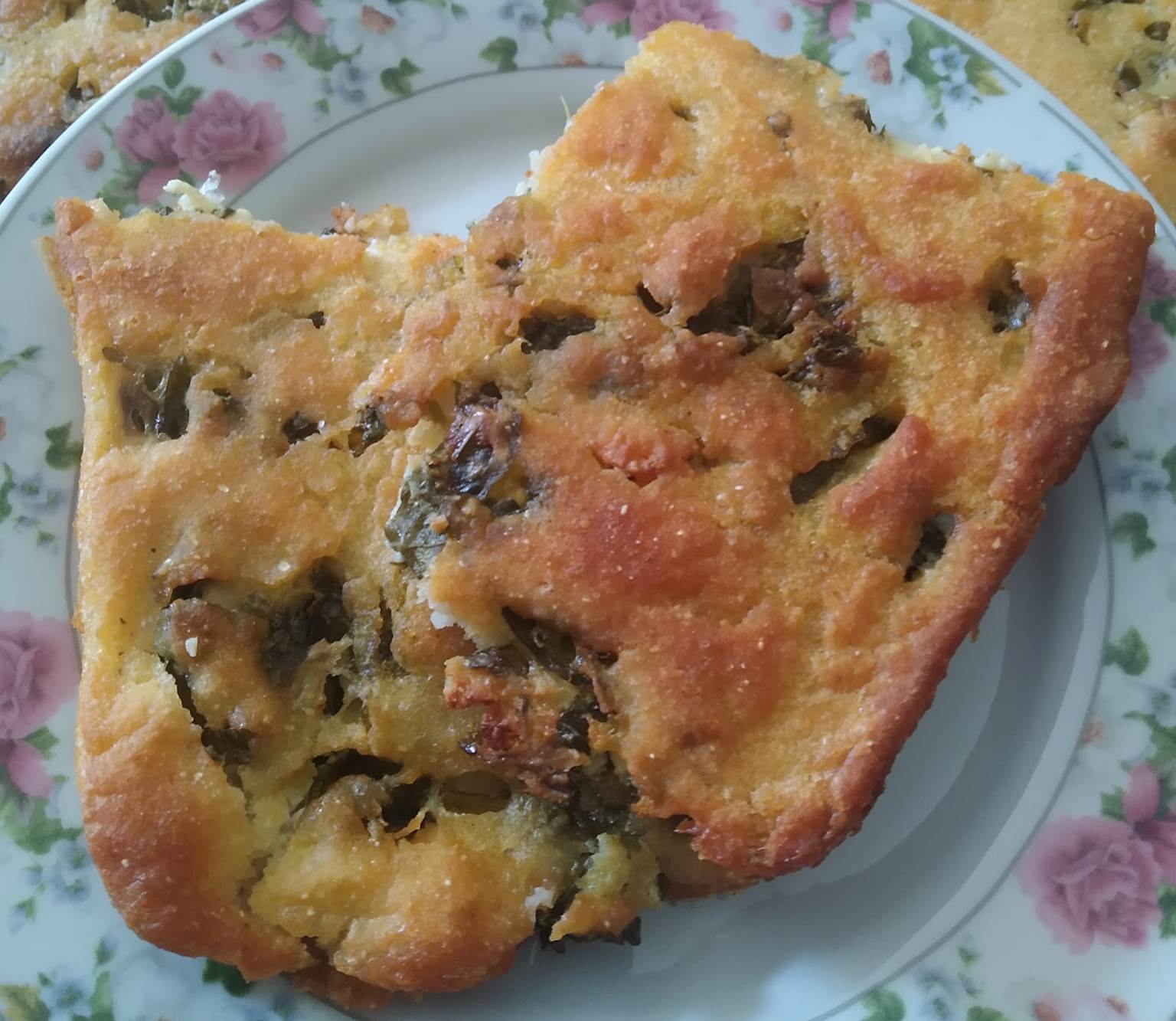 Παίρνουμε με κουταλι απο την κρεμα και στρωνουμε μια λεπτή στρώση στο ταψί μας και απο πανω στρωνουμε τα υλικά της γεμισης που τα έχουμε ανακατέψει καλα και απο πανω καλυπτουμε με την υπολοιπη κρέμα.. ραντίζουμε με ελαιολαδο και ψηνουμε στους 200 β μέχρι να ροδίσει