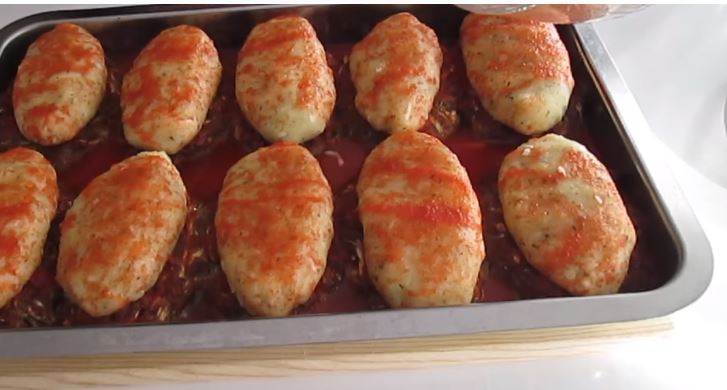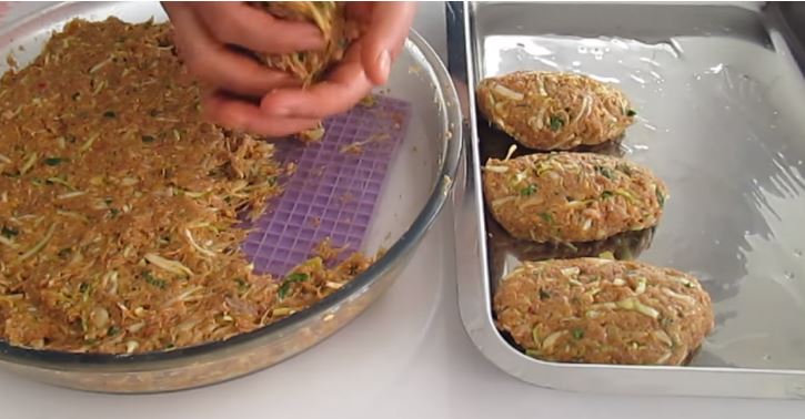 Μόλις ο κιμάς είναι ετοιμο πάρτε ένα μεγάλο κομμάτι απο το μείγμα του κιμά πλαθετε το μπιφτέκι και βάλτε το στο ταψί.
