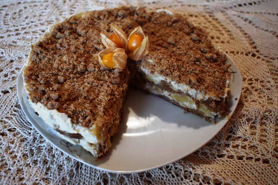 Μην τα κρατάτε για πολύ ώρα στον καφέ, δεν πρέπει να μαλακώσουν. Τους βάζουμε κρέμα, μετά μπισκότα, κρέμα, μπισκότα και αλείφουμε από πάνω με το τελευταίο τουλάχιστον το ένα τρίτο. Πασπαλίστε με θρυμματισμένα μπισκότα και φυλάξτε το κέικ στο ψυγείο, καλυμμένο με καπάκι, κρύψτε το από τα μάτια και ξεχάστε το. Αυτό είναι το πιο «σκληρό» κομμάτι της συνταγής.