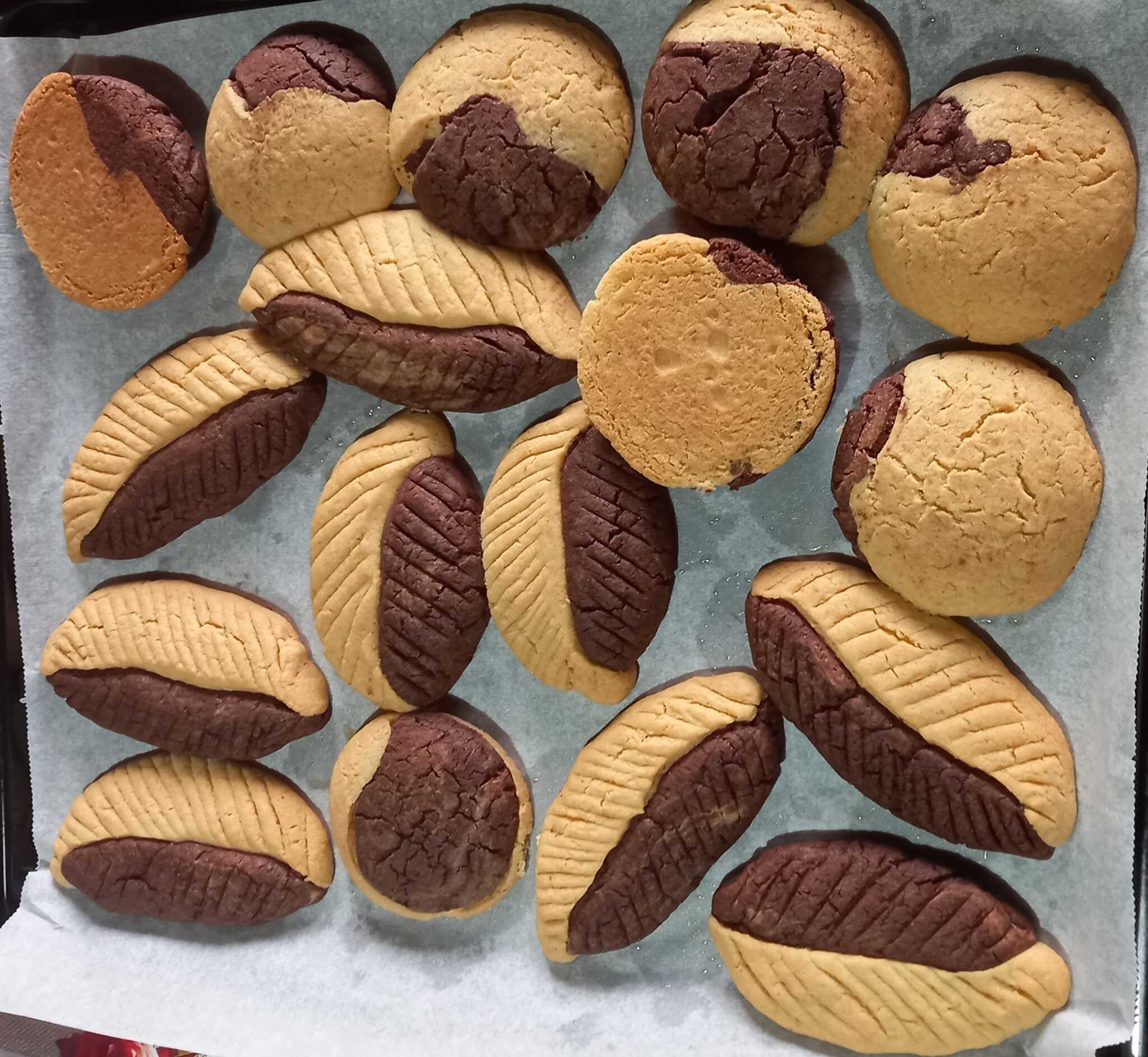 Αυτά τα μπισκότα με διχρωμη ζύμη είναι απλά στην παρασκευή, γευστικά και οπτικά εντυπωσιακά! Η ζύμη είναι εύκολη στο ζύμωμα και δεν χρειάζεται πολύ χρόνο για να ξεκουραστεί. Η διχρωμία προσδίδει μια παιχνιδιάρικη και χαρούμενη νότα, ενώ η γεμάτη γεύση βουτύρου αφήνει μια ευχάριστη αίσθηση στον ουρανίσκο.